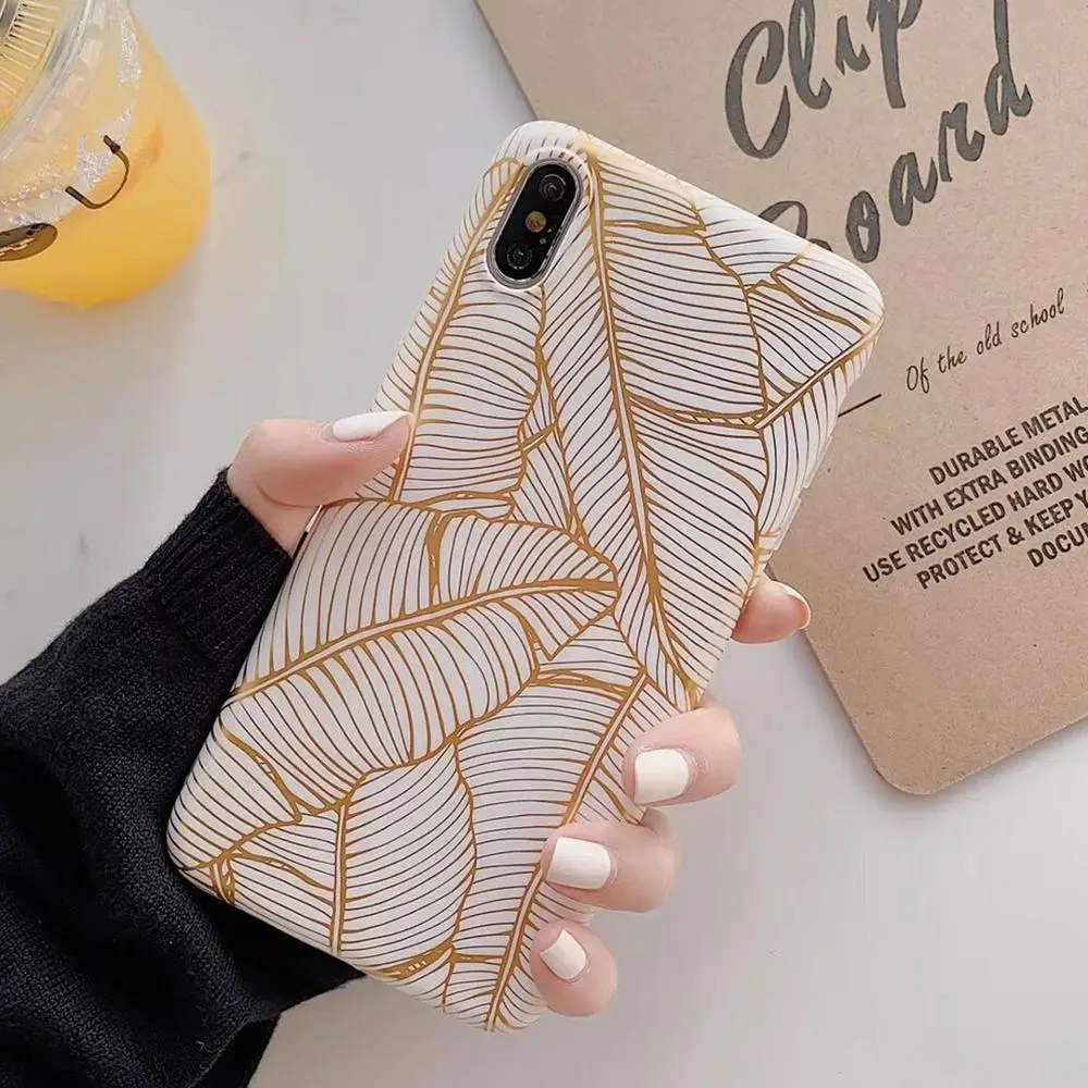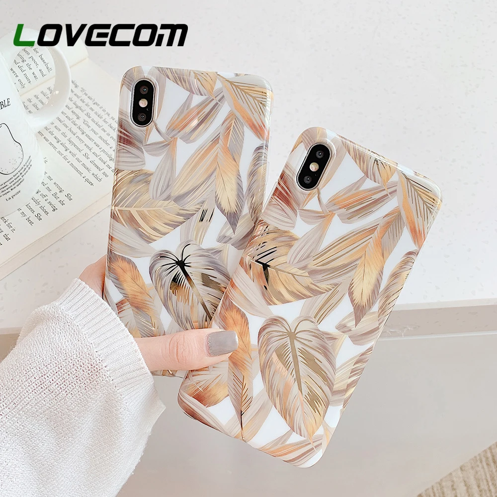 astounding LOVECOM Phone Case For iPhone 11 Pro Max XR XS Max 6 6S 7 8 Plus X Electroplated Vintage Gold Leaf