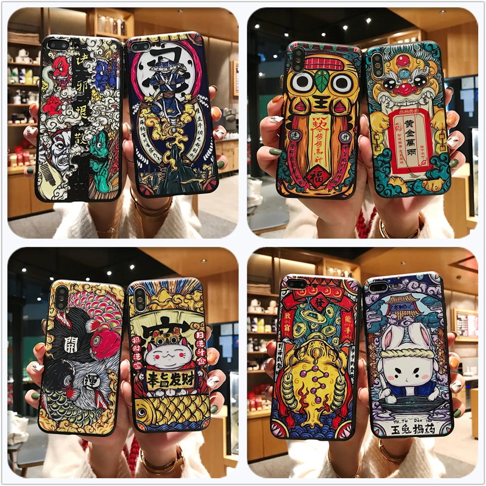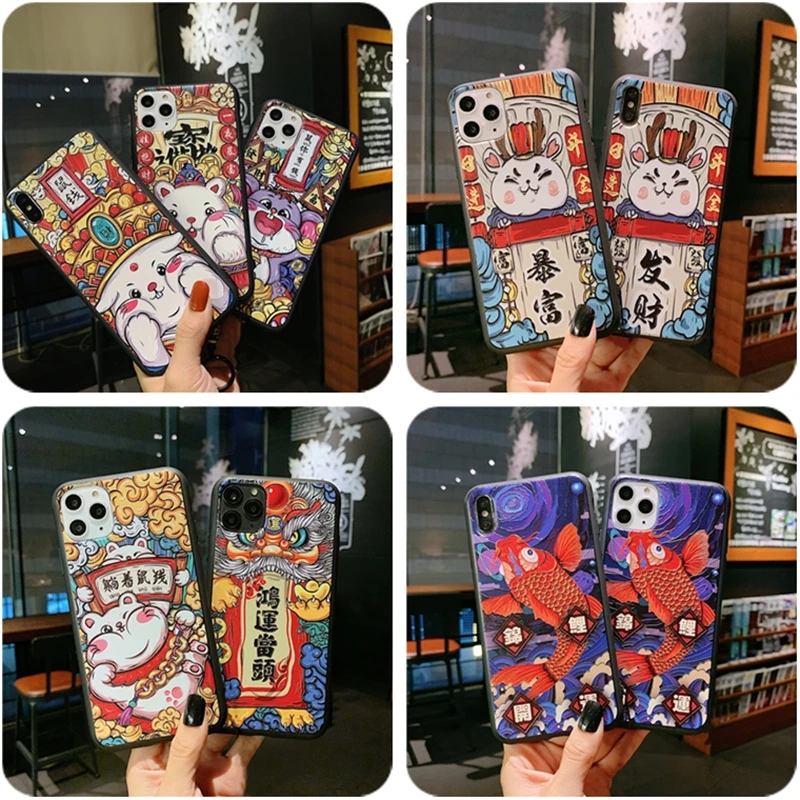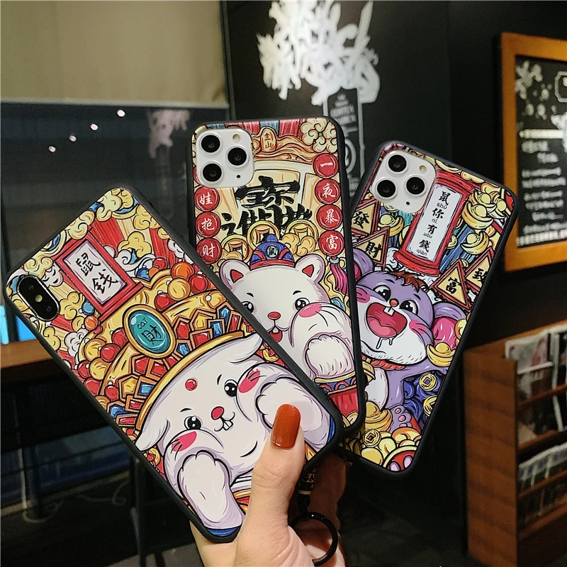awesome Chinese Style 3D Cartoon Lucky Rabbit Cat Lion Phone Case For iPhone 11 Pro X XS Max XR 8 7 6 6s Pl