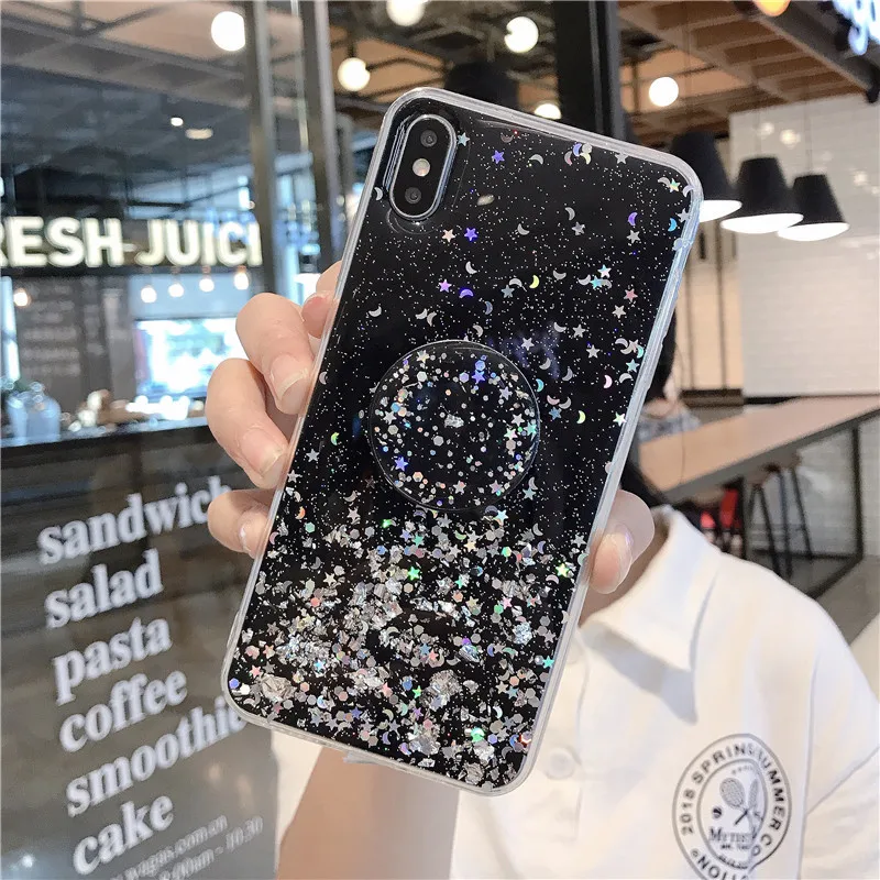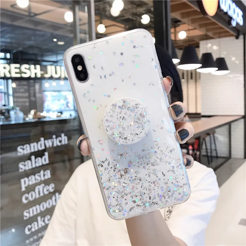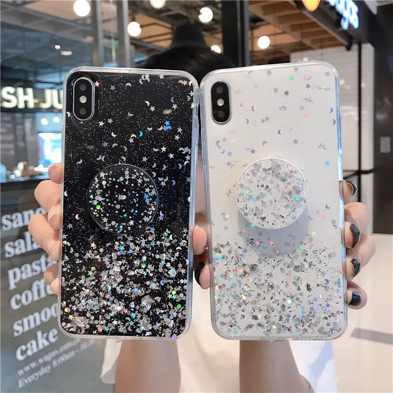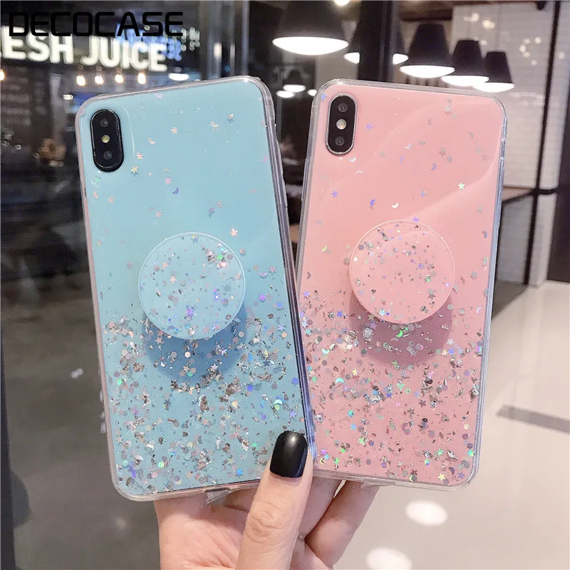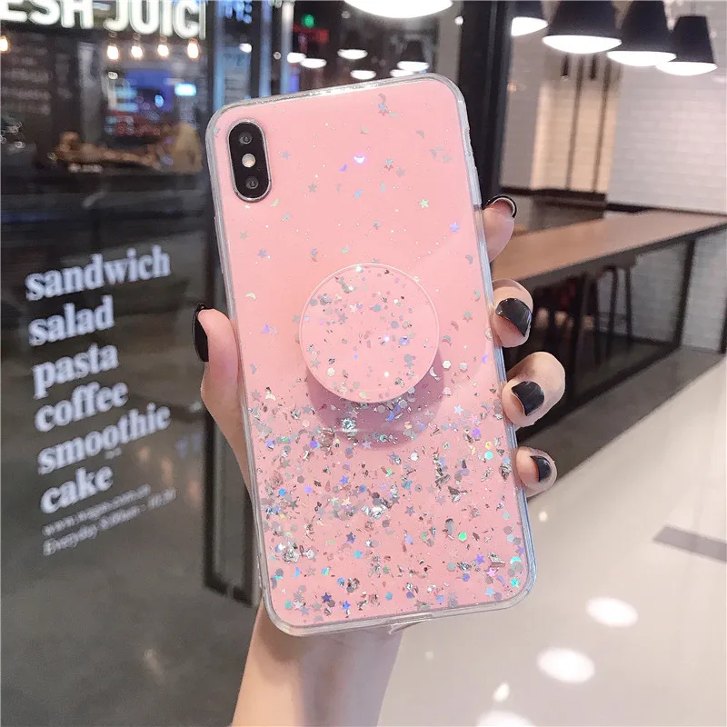 discounted Kuutti Pink Blue Glitter Finger Ring Holder Phone Case for iPhone 6 6s 7 8 Plus X XR XS Max Covers