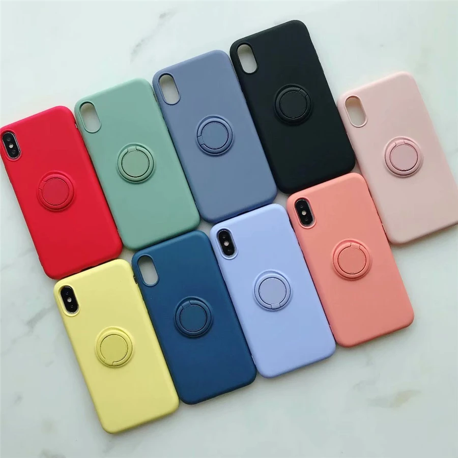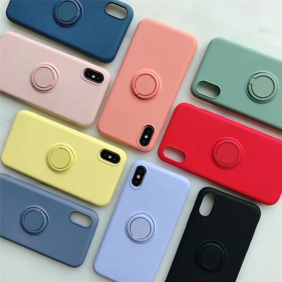 low cost Soft Silicone Case For iPhone XR 11 Pro 6S XS Max XS X R 7 8 6 Ring Holder Stand Shockproof Silicon