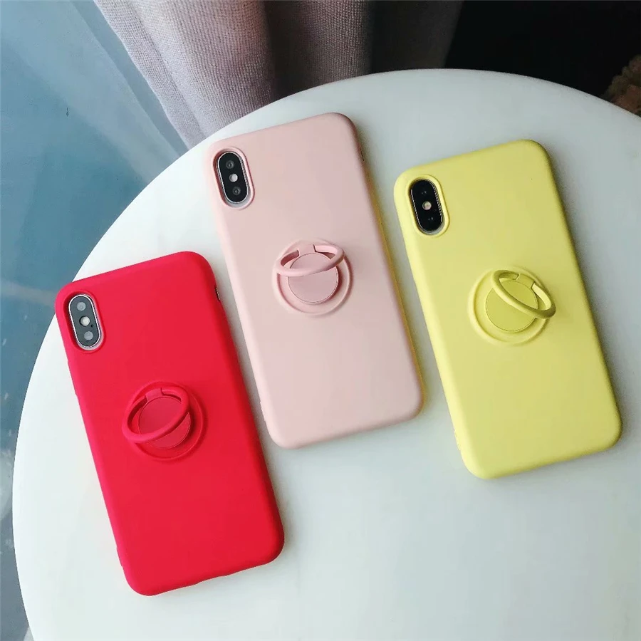 wonderful Soft Silicone Case For iPhone XR 11 Pro 6S XS Max XS X R 7 8 6 Ring Holder Stand Shockproof Silicon