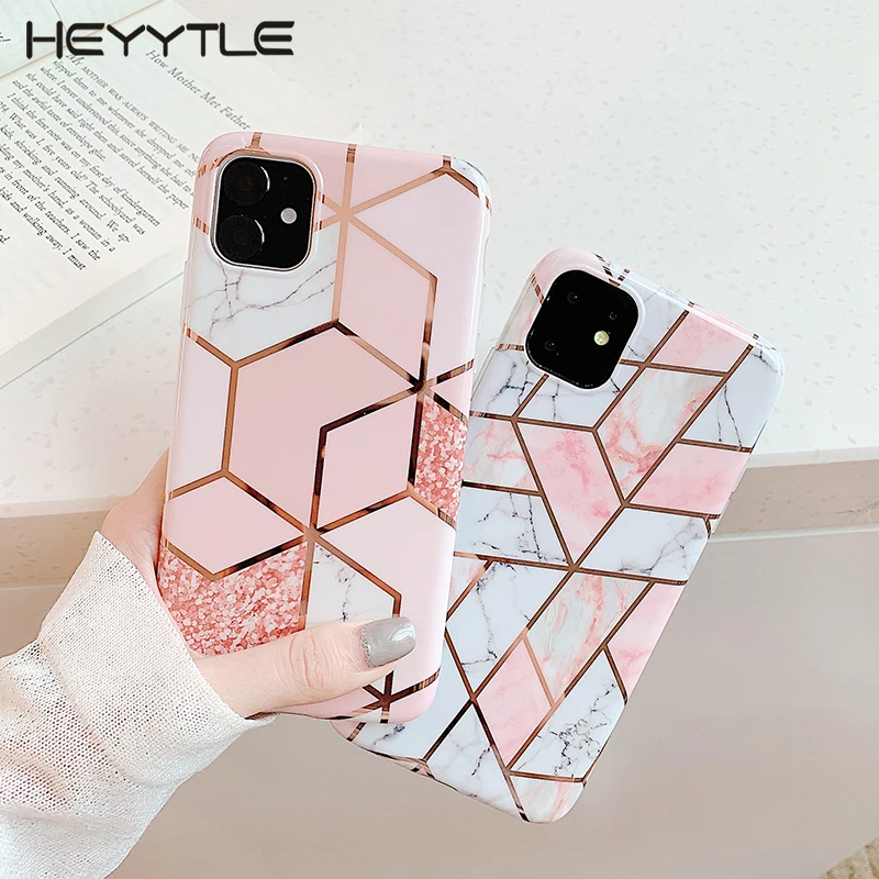 Very best Heyytle Geometric Marble Case For iPhone 11 Pro Max XR XS Max 6 6S 7 8 Plus X Soft IMD Plating Back